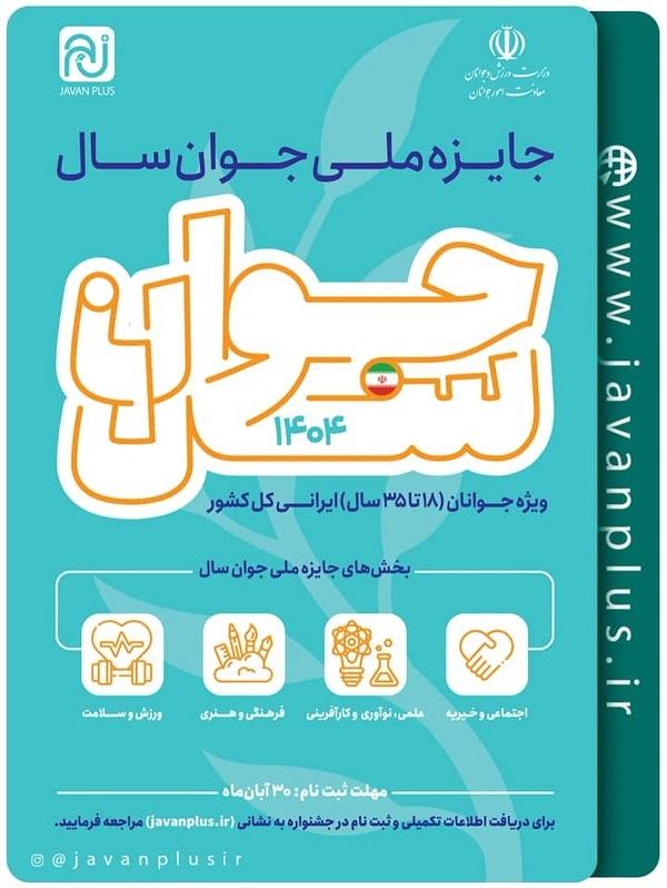 جایزه ملی جوان ۱۷ آبان ۱۴۰۴ | ۱۳:۲۴ کد : ۵۶۱۱۵ اطلاعیه ارسال به دیگران نام شما ایمیل شما ایمیل دریافتکننده ارسال انصراف تعداد بازدید:۱۰۱۰ جایزه ملی جوان سال ۱۴۰۴ فراخوان شرکت در جایزه ملی جوان سال ۱۴۰۴ منتشر شد.