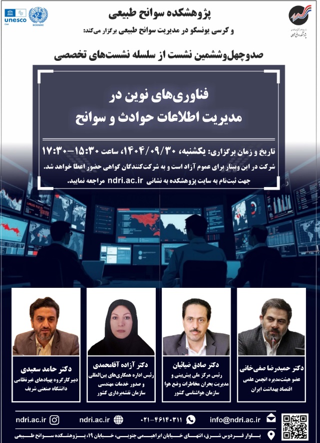 نشست فن آوری نوین در مدیریت اطلاعات حوادث وسوانح ۳۰ آذر ۱۴۰۴ | ۱۲:۰۴ کد : ۵۷۱۴۹ اطلاعیه ارسال به دیگران نام شما ایمیل شما ایمیل دریافتکننده ارسال انصراف تعداد بازدید:۱۲۸۰ دعوتنامه نشست فن آوری نوین در مدیریت اطلاعات حوادث وسوانح