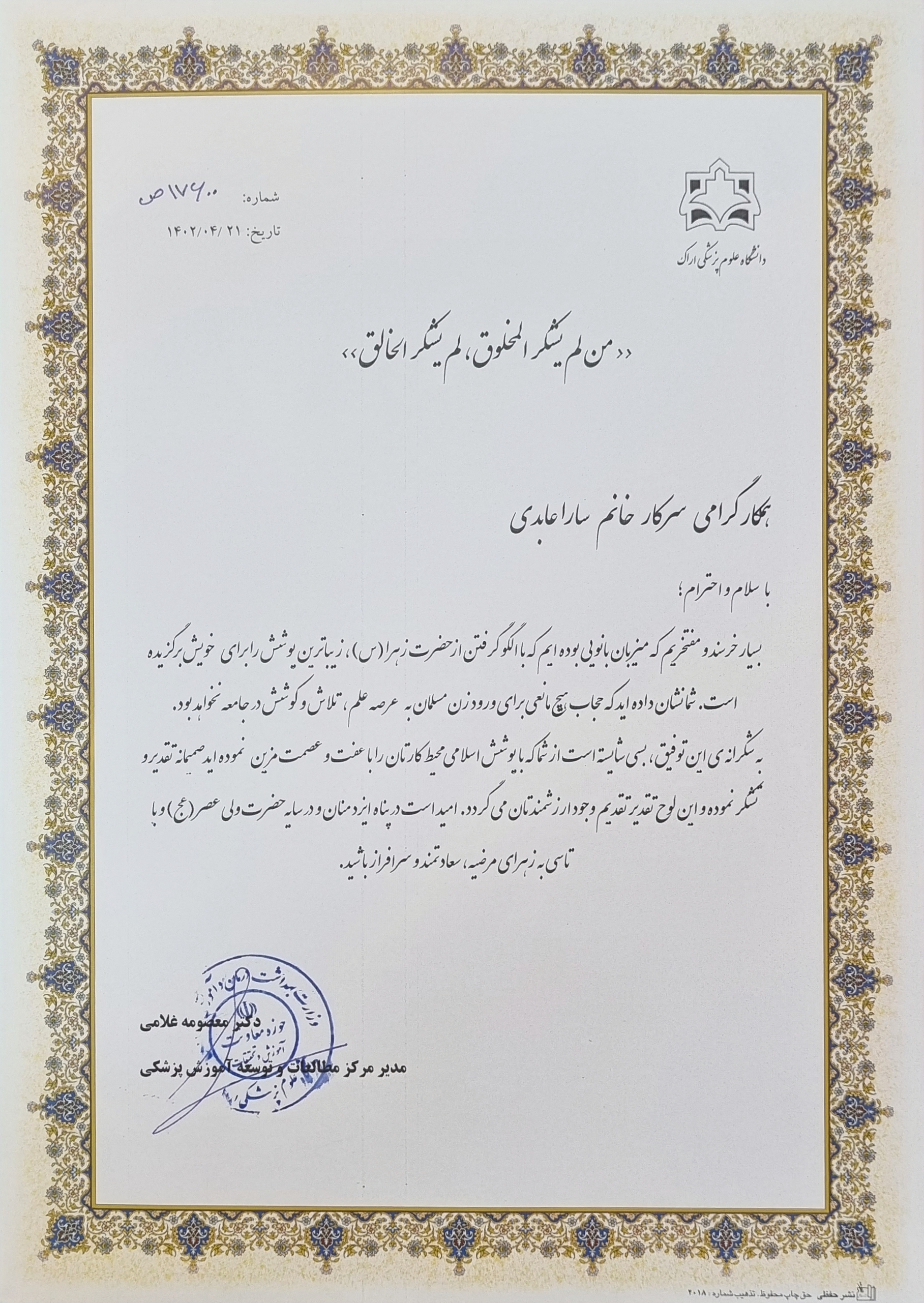 تقدیر از پیشگامان عرصه عفاف و حجاب در مرکز مطالعات و توسعه آموزش علوم پزشکی ۲۱ تیر ۱۴۰۲ | ۱۰:۲۴ کد : ۳۵۷۸۵ اخبار اسلایدی اخبار اصلی ارسال به دیگران نام شما ایمیل شما ایمیل دریافتکننده ارسال انصراف تعداد بازدید:۱۶۸۱