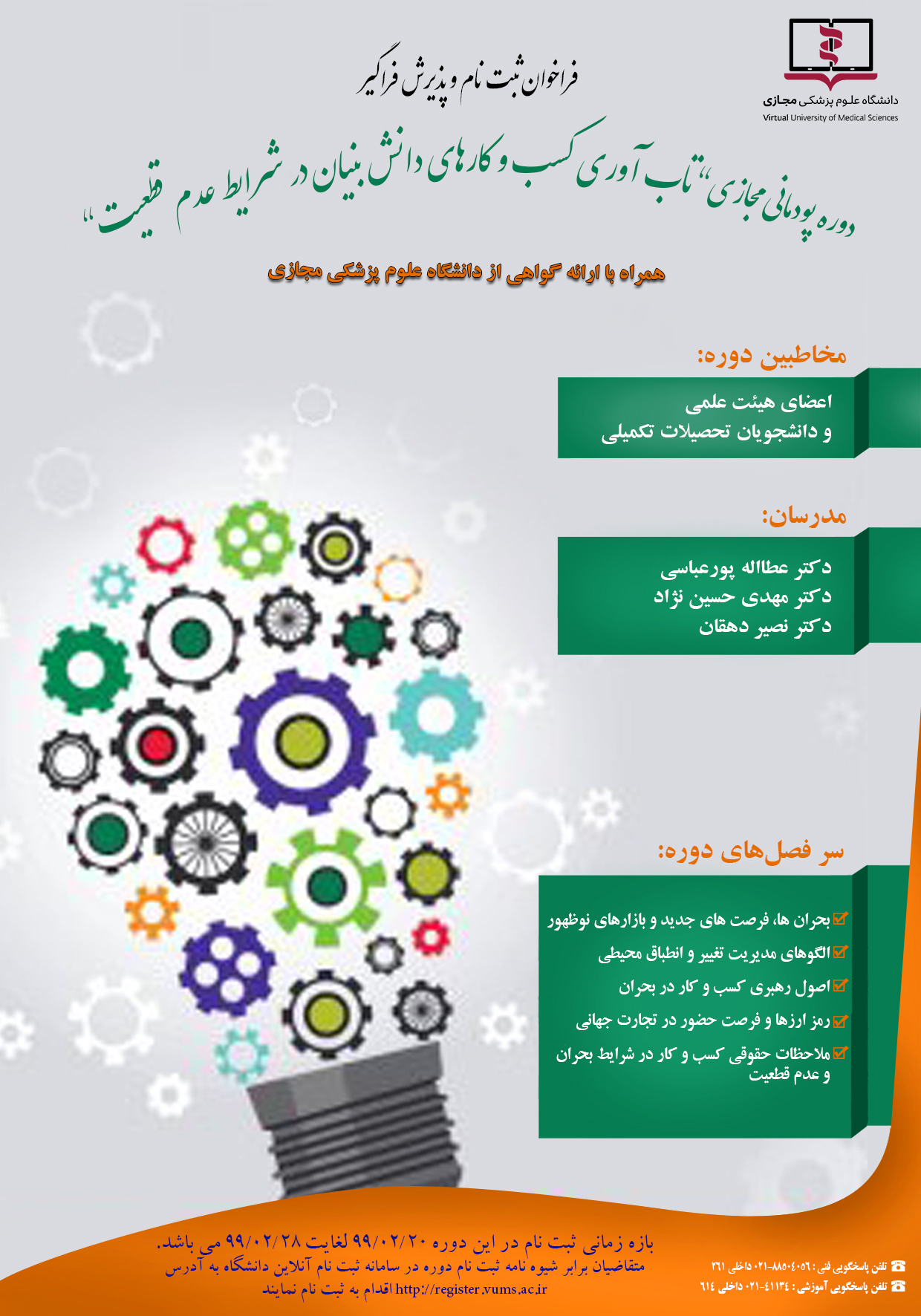 فراخوان ثبت نام و پذیرش فراگیر در دوره پودمانی تاب آوری کسب و کارهای دانش بنیان ۲۰ اردیبهشت ۱۳۹۹ | ۰۹:۰۷ کد : ۹۲۷۱ اخبار اصلی ارسال به دیگران نام شما ایمیل شما ایمیل دریافتکننده ارسال انصراف تعداد بازدید:۲۷۸۲