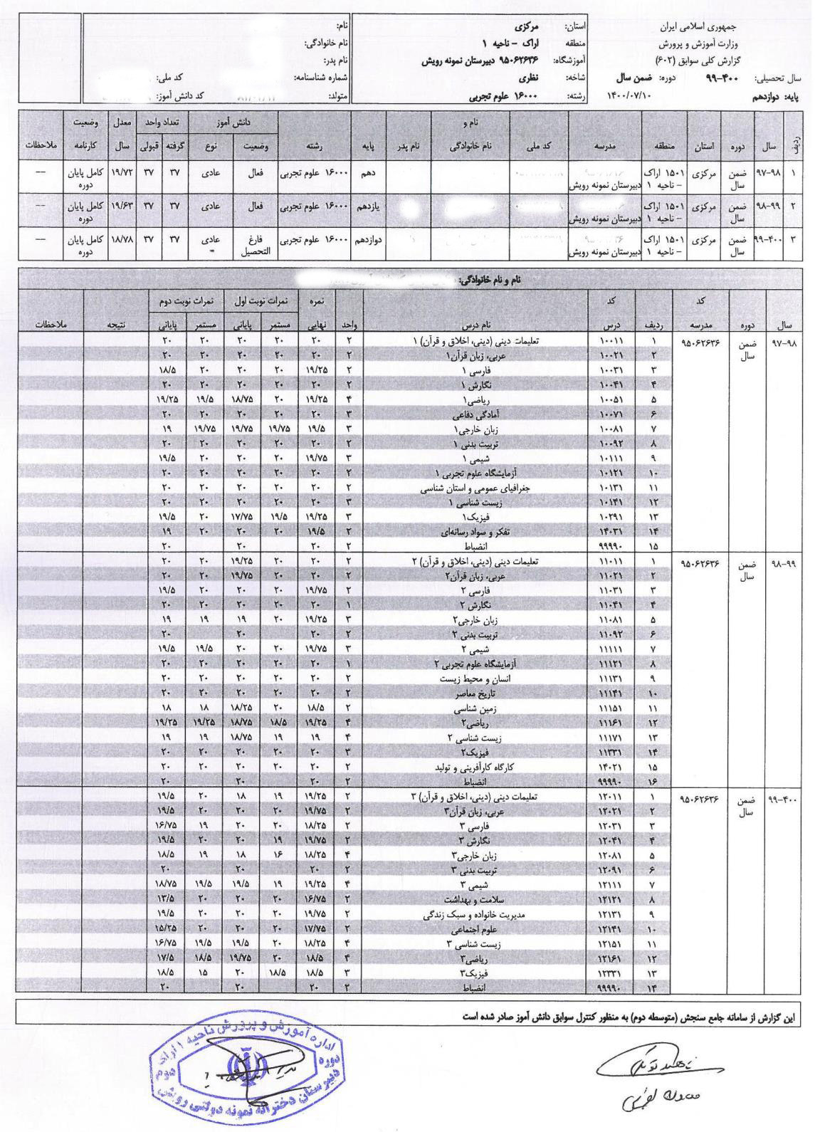 | - فرم 602 (گزارش کلی سوابق تحصیلی پایههای دهم تا دوازدهم) قابل دریافت از دبیرستان محل تحصیل با مهر و امضای مدیر یا معاون اجرایی دبیرستان. ( نمونه فرم 602) | |